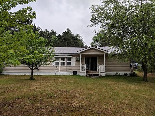 Check out this affordable, updated, country home located a couple minutes from the golf course and right between 3 lakes! This 2 bedroom, 2 bath mobile home has a huge stick built addition and has been ripped down to the studs, reinsulated and redone! Although only 2 bedrooms, each bedroom is huge and includes a ton of closet space. The master bedroom has an attached master bedroom as well. The kitchen, dining, living room area is all open concept and the entryway/laundry room is also very spacious. A partial basement offers the utilities and extra storage. Front and rear decks are great for entertaining or just listening to the loons talk while you enjoy your morning coffee. A detached 1 car garage is a great space for a workshop and storage as well. The seller has his garden in so buy now and you will have veggies already growing! Located around the corner from Inshalla Country Club, the Jersey Flowage, Half-moon and Clear Lake not far from town, the location is ideal.