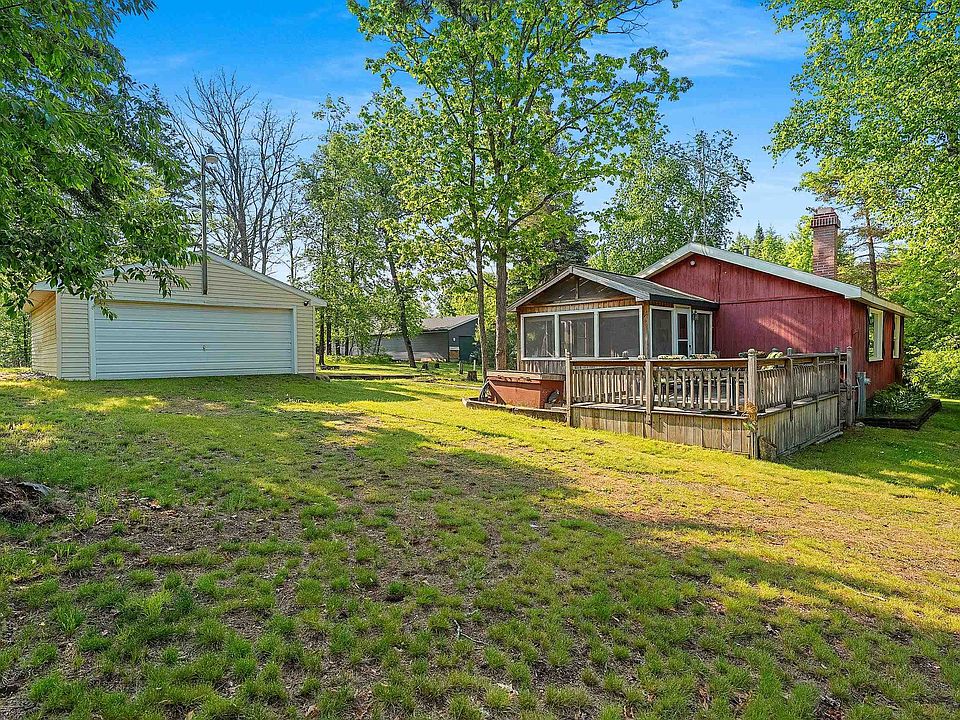 Pack your bags and head north! Walking distance from both Little Newton Lake and Big Newton Lake, you will find this adorable cozy 1 bedroom (Easily converted 2 bedroom) cabin! Sitting on one full wooded acre, this cabin has tons of life left to live. Beautiful cedar tongue and groove ceiling, wood burning fire place, open concept layout with lots of natural light. Large screened in porch measuring 12x13 and wood deck! Two stall detached garage. Enjoy easy access to UTV & snowmobile trails, nearby dining options, 15 mins from the flowage, 15 minutes to Crivitz and so many other great locations! Property is being sold as is; where is. Foundation is crawl space. Kitchen floor painted. Room sizes approx-buyer to verify. Please allow 48 hours for binding acceptance.