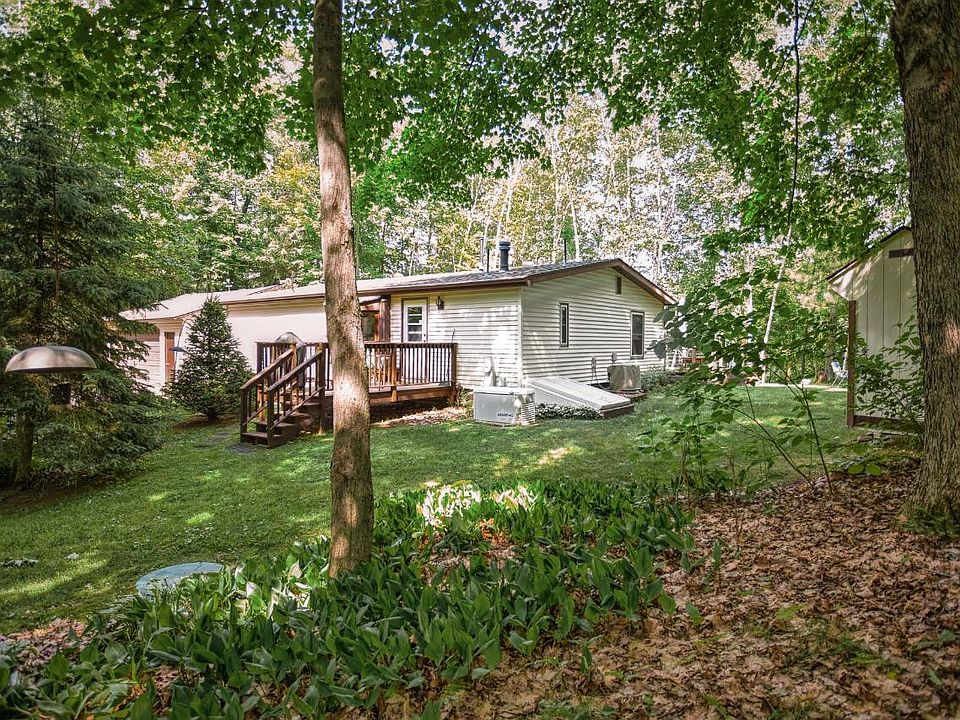 On Squaw (now Wisconsin) Lake, this 2-Bd, 2-Ba home is in a wooded setting 10 miles south of Rhinelander. The lake is 82 surface acres, 44 feet deep, & offers Walleye, Musky, Largemouth Bass, Northern Pike & Panfish (WI DNR). The Seller says "the only bad thing about the lake is that you can't go across it in a boat too slow because the fish just jump right in!" But seriously, you will enjoy year around living on this peaceful lake, with garage, decks, blacktopped driveway, cement walk, casual landscaping, a shaded yard, singing birds, lake breezes, and privacy near the end of a dead end road. Your well maintainedhome offers a partial basement, Generac full-house generator (w cold air pack which keeps the oil and battery warm when the temperatures drop below freezing), central air conditioning, updated custom kitchen with hickory cabinets & oak window seat, a remodeled bathroom, free standing gas stove, vaulted ceilings, patio doors, great views, and up north living, but not too far!