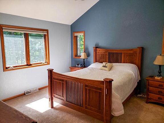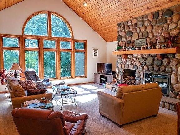 You won't be hurting for space in this 5 bed, 3 bath home loaded with extras, on the Nokomis Chain. This high quality home features a recently jacked up master bath like no other, big beautiful wood fireplace with heatolater, sauna, central vac, a combination of forced air and zoned in-floor heat, even in the garage. You will enjoy the large cathedral living room with massive windows to view the water on the main level and an extra large rec room with partial kitchen and a sauna on the lower level. Not to mention the oversized patio outside the walkout basement, furnished of course, with a hot tub. The oversized garage with upper level storage is sure to please. A beautiful spacious country home, spectacular sunrises, the beauty of the maple trees, plus the bonus of being on the Nokomis Chain can be yours. Call today for a showing.