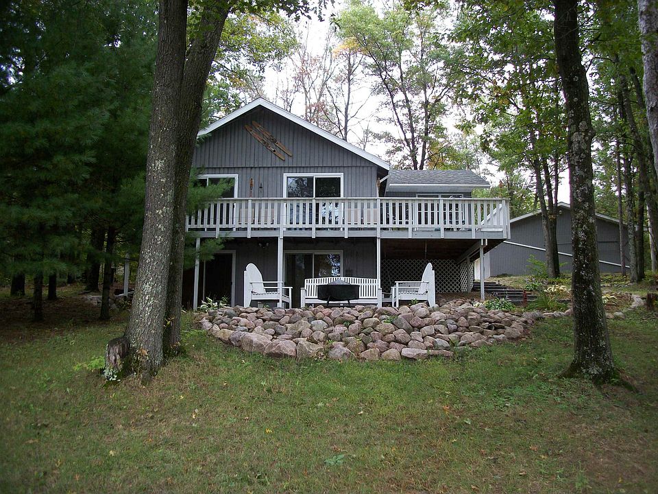 Enjoy the beautiful Legend Lake with your very own 3 season cottage on a quiet dead end road. Situated on a beautiful gentle sloping lot with a sandy shoreline. Cottage features open concept living/dining area with walkout deck which includes an awesome 3 seasons room overlooking the water. Updated kitchen and bath, 2 bedrooms, plus a sleeping loft, and a walkout lower level with a large family room plus the potential of a 3rd bedroom. Also comes with a huge 28x40 garage for all your toys. Outside features include a landscaped yard with large stamped concrete patio, two firepits and roll in dock. New drilled well 2016, new water heater 2017. Call to see this affordable cottage.