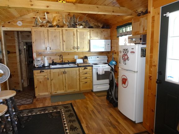 New well constructed 2 bedroom, 1 bath home or cottage. Log siding, t&g interior, invisible dog fence, wood shed, and 12 x 20 storage shed. Perfect vacation retreat. Located near the Menominee River for fishing and boating. DNR land across road. Additional 1.5 acres available. Furnishings sold separately if interested.