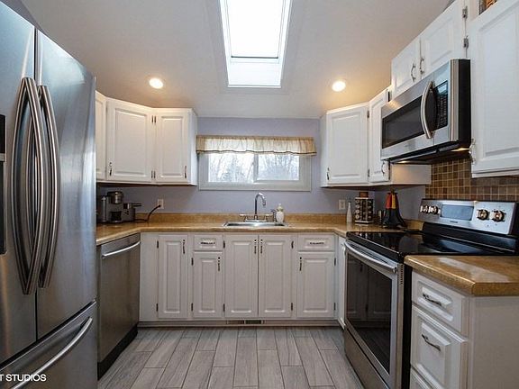 Step into this charming 3 bedroom ranch and you'll feel right at home. The bright, updated kitchen has stainless steel appliances and plenty of cabinetry. A spacious living area with skylights and a vaulted ceiling is the perfect place for gathering! French doors lead to the outside where you'll enjoy a private, fenced in yard with plenty of room for entertaining! Off of the 2 car garage you'll find a screened in porch which is perfect for relaxing on summer evenings. The exterior has been updated with new vinyl siding, roof, gutters, and a paved driveway. This move-in ready home is waiting for you!