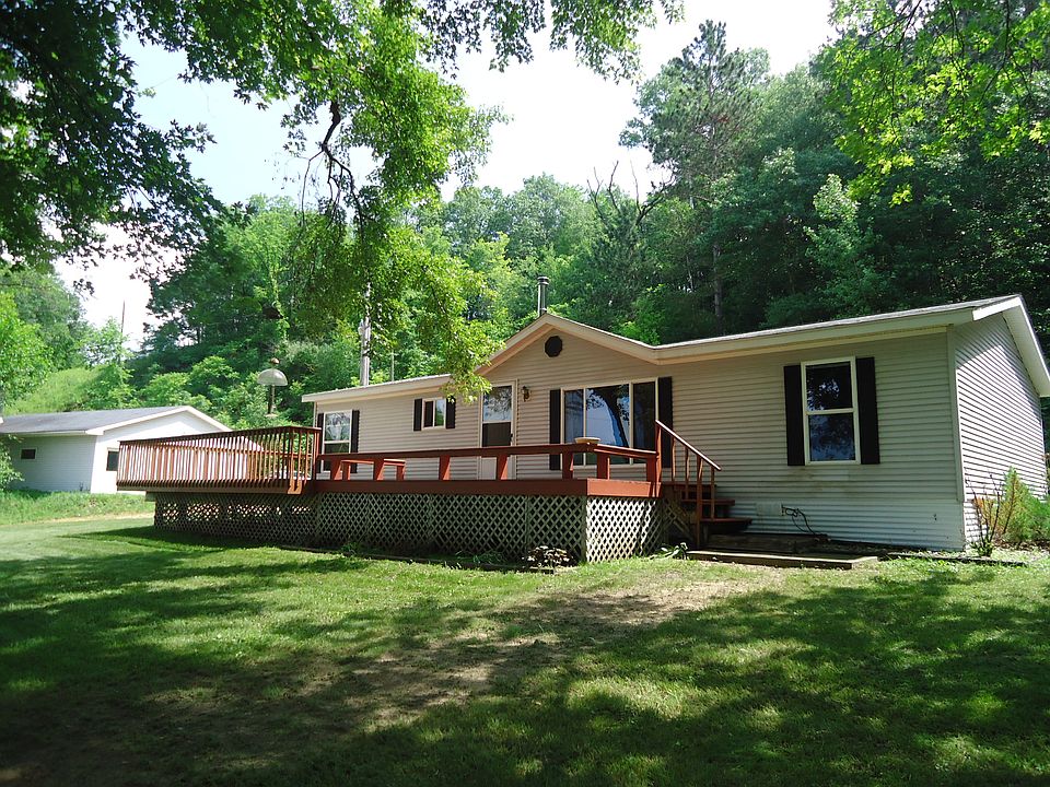 One Level Home surrounded by nature in a beautiful valley, just a few miles out of Maiden Rock. Gorgeous country views from the wrap around deck. Large eat in kitchen living room has a woodstove to conserve energy. Newer water heater and a gas furnace 2012. Roof is approx. 5 years old. 28 x44 garage with a woodstove. This would be a great place to live or just a weekend getaway. Private setting.