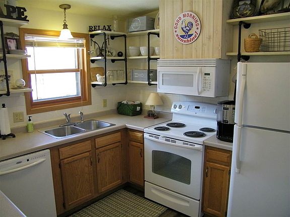 I'm Sittin On The Dock Of The Bay...Quiet water frontage in the Thunderbird Addition Bay. Ranch style home tucked away on double lot offering open concept living, field-stone gas fireplace, walk-out lower level, wrap-around deck with gradual slope to the water's edge providing opportunities for many-a-lazy day floating on the lake. Extra lot offers ample garage space with more than enough space for your storage needs.