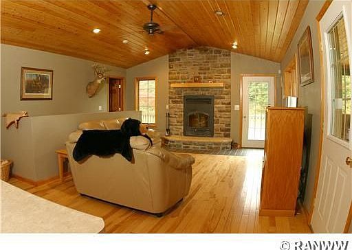 Single Family HomeEscape to the country in this newer ranch home w/40 acres! Open design w/wood ceilings, birch wood floors, hickory cabinets, stainless steel appliances, wood burning stone fireplace, raised panel doors, Anderson windows, and cedar siding. Enjoy the private peaceful outdoors from the large wrap around deck.Detached garage & seperate pole shed (27 x 35) on property.