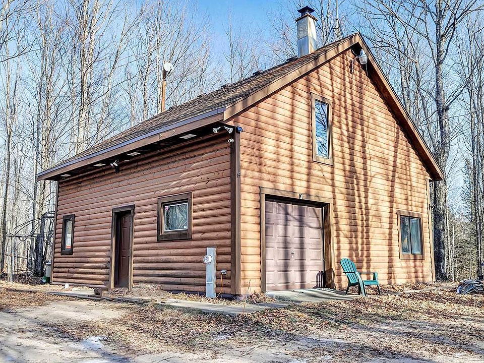 Over 40 wooded acres with several food plots providing an abundance of wildlife and excellent hunting! Winding drive leads to a log sided cabin offering an open concept great room with vaulted ceiling, a relaxing wood burning fireplace and wall of windows providing beautiful wooded views and an abundance of natural light. The kitchen is fully applianced and there is a laundry room with washer and dryer included. There is an expansive primary bedroom with walk-in closet and an oversized sleeping loft overlooking the great room. 6 panel doors throughout. The garage is insulated and heated and features 200-amp service. Also a 8 x 12 shed for additional storage. Recorded easement to reach parcel.