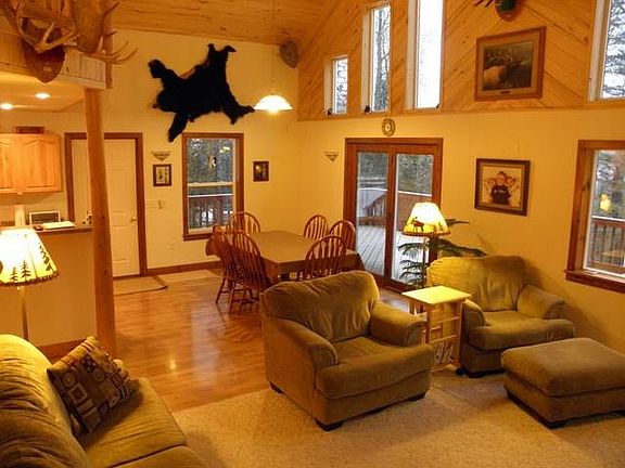 This home features an open concept floor plan with cathedral ceiling, stone fireplace, and dining area with door to spacious wraparound deck, ideal for entertaining. The loft has space for a sitting area/library, and spacious master suite offers walk in closet and full bath. The main floor has a utility room with cabinets and folding counter, and there is a main floor office. The lower level is a walk out, has three season room and family room, as well as 2BR's and full bath. The lot is well landscaped and has space for a garden, and if you are looking for storage there is a garden shed and detached heated garage/workshop. The property has a wooded backdrop and is within 150' of 1000's of acres of Plum Creek and Price County Forest, has access to snowmobile trails, and there is deeded access to the South Fork of the Flambeau River, excellent for fishing and canoeing/kayaking!