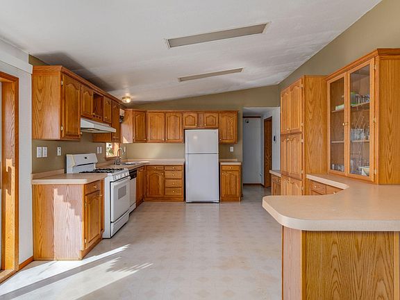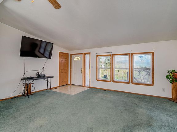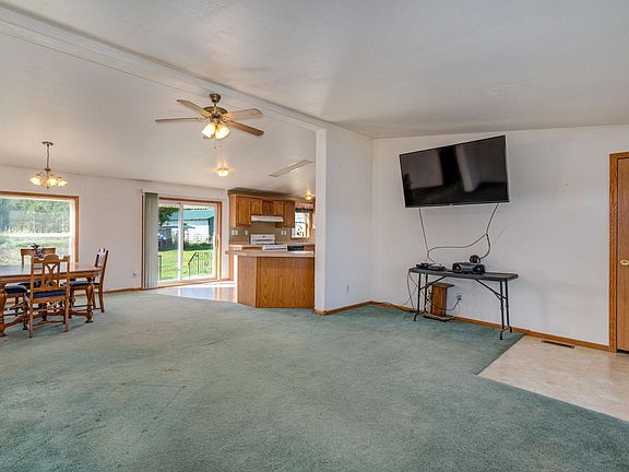 Great views and scenic setting with this home on the hill. 3 bedroom 2 bath home on just over four and half acres. Open floor plan. Private master bath. Appliances included. 2 car detached garage, 28x40 shop and a shed for the animals. Make your move to the country! New furnace installed November of 2022.