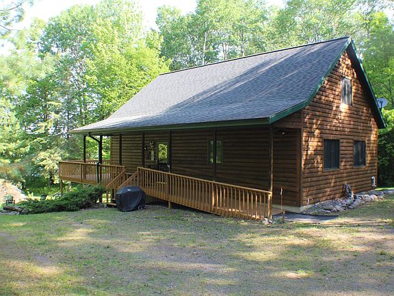 (255/MES) Welcome to life on the river. This chalet style home is located on a 2.33+/- acre wooded lot with 157+/- feet of frontage on the Crowley Flowage of the Flambeau River. The home features 2 bedrooms, main bath, large loft, walk-in laundry and an open concept kitchen and living area. A large half covered wrap around deck allows for stairless entry into the home and ample outdoor living space. The interior of the home features oak cabinetry, a white oak banister to the loft, knotty pine tongue and groove ceiling, tasteful half-log wall coverings and log beams to provide a rustic feel to a modern home. Central air and a pellet stove provide indoor climate control and ambiance for those hot summer days or cold winter nights. The basement is framed, insulated and has plumbing for an additional bathroom. The property also offers a 2-car detached garage. Home furnishing are negotiable. $379,900. 2022 taxes: $3,726. (Lot 6, Pixley Wilderness Shores West, 7-39N-1W)