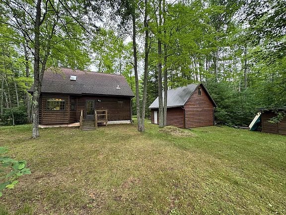 Charming Log Sided Bungalow Retreat Abutting Marinette County Lands. Quality Built & Cared For, across from Lehman Lake. Private dead-end road, a perfect getaway of solace or adventure. A well-appointed bedroom complemented by a charming loft area. 18 ft vaulted knotty pine ceiling accentuated by a skylight. (4 Ft lower level mechanics & storage) Interior six-panel doors, ceramic flooring, & wood accents throughout. Combo Bath & Laundry Room. Galley Kitchen, Breakfast Nook, Counter Seating, Grid Windows, Electric Range, Refrigerator. Free Stand wood burning fireplace. Covered front porch, 1000 gal septic, point well. Detached 18' x 24' Garage, Loft. Firepit area. Built & Lovingly Treasured by the Same Family for 22 yrs. Is now available for a New Family to Enjoy & Cherish. Move In Ready