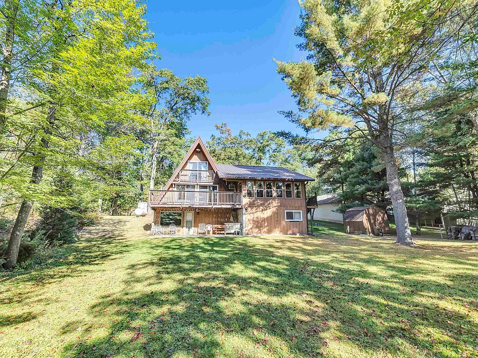 Tranquil Oasis on the Legend Lake Channel! Looking for your home away from home, or a year-round retreat? This charming 3 bed, 2.5 bath A-frame, situated on just under half an acre waits for you! As you make your way through the home you will see the main floor has beautiful natural light & an open concept design. This property includes a Unique spiral staircase leading to a spacious walkout BSMT with concrete floor full BR, rare garage door access to the outside! This home pulls out all the stops as it has garage space, privacy, waterfrontage & character! You can be sure this property was very well maintained as the seller replaced the Septic, Roof & Boiler! Don't miss out on the chance of a lifetime with 100' of Sandy Frontage & .45 Acres of privacy it wont last, Drive By & Call Today!