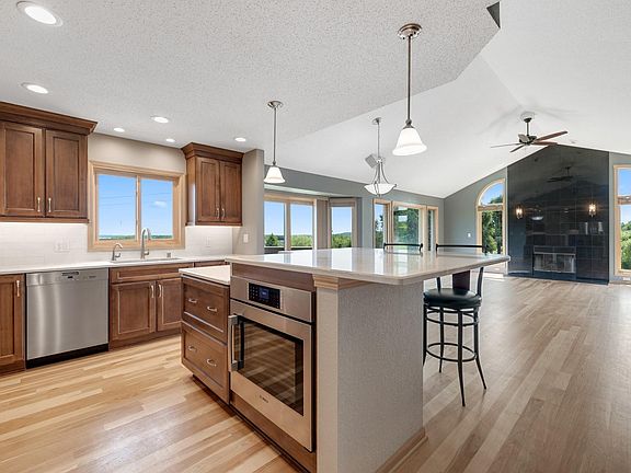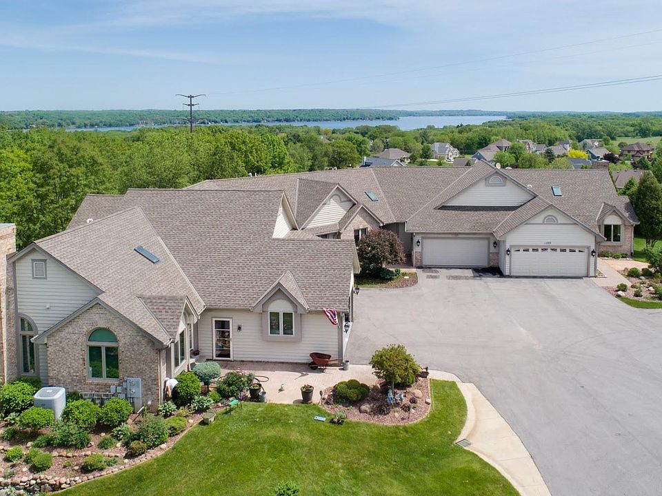 Stunning end unit condo with views of Pewaukee Lake! Many updates including new hardwood floors and a stunning kitchen remodel featuring quartz countertops, new cabinetry, backsplash, and new stainless steel appliances. Open floor plan with tons of windows to bring in all the natural light. A fireplace on each level to keep it cozy in the winter months. Generous size bedrooms and three full bathrooms. Lower level is an entertainer's dream! Walk outside to the private patio or upstairs on the deck to enjoy the landscape.