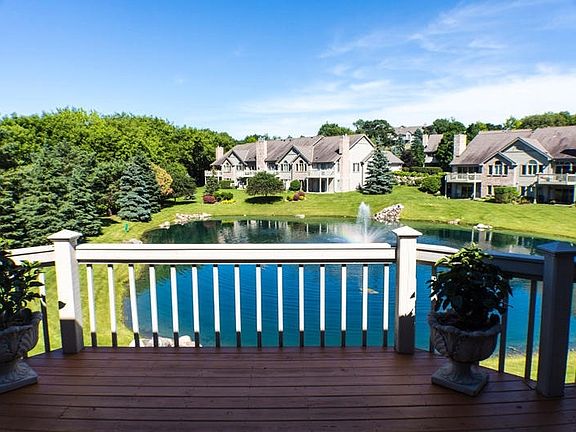 Amazing 3 bedroom Condominium with great view of the pond! Kitchen has granite tops, two ovens, large pantry and wood floors. Living room has sliding doors to patio/deck with sun in the morning and shade in the afternoon. Intercom throughout the house, 2 fireplaces, master bath with Jacuzzi tub and shower stall. Lower level has wet bar, built-in vacuum system, pool room and exercise room or third bedroom! Great for entertaining.