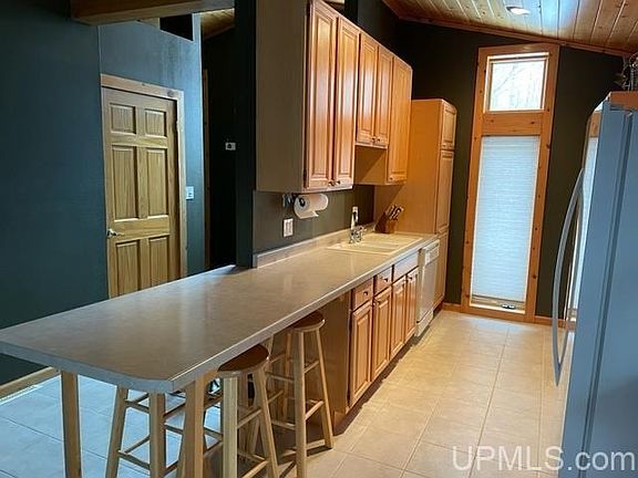 Glen Lake - 3br, 1.5 bath home with over 1700sq.ft of living area. The main level features an open concept kitchen living room and dining area with lakeview. Cozy up in front of the wood burning fireplace on a cool summer evening or in the winter after a day of ice fishing or snowmobiling. The lower level features a family room, 2 bedrooms and a 1/2 bath finished with similar quality as the main level with daylight windows and over 8' ceilings. Sit around the firepit to recap the day of fishing, ATV, hiking, relaxing, etc. 30x40 4 car garage will store all the toy!