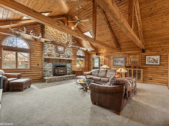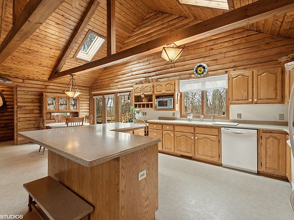Connect to the picturesque natural beauty of Geneva Lake, without being completely disconnected from all that the area offers. There are still places immersed in mature oak trees, native flowers, and abundant wildlife that make working from home an absolute joy. Wooddale subdivision is just such a place, but its proximity to Lake Geneva, Linn Pier, and Fontana make it special. Exposed cedar trusses, skylights, and other thoughtful details are readily apparent as you walk through the open floor plan with separate Primary Suite. Multiple outdoor decks overlook the expansive yard, where a hand-crafted, pioneer-style shed perfectly compliments a home in sync with the gorgeous Linn Nature Park across the road. Bring your own ideas to the 9'+ ceilings in the finished lower level. 25' deep garage can accommodate large boat/trailer.