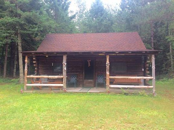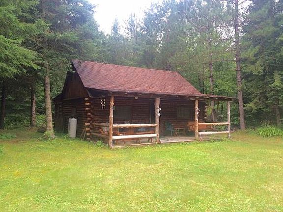 (#143H) Located in the National Forest is this one room open concept cabin. Interior has gas lights, gas refrigerator and plenty of room. The parcel borders Chequamegon on two sides. Includes an open front porch and an enclosed screen porch in back. Two elevated stands on property. Hand pump well and outdoor privy.