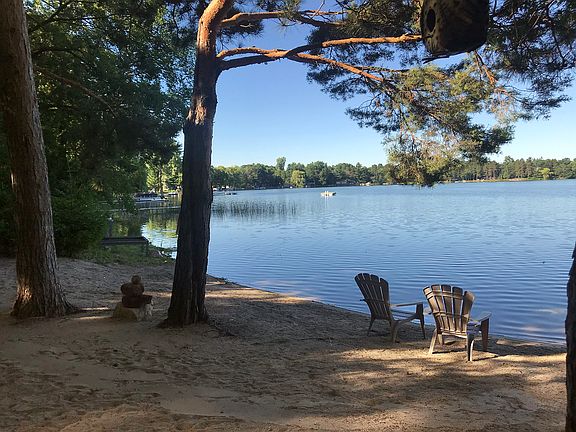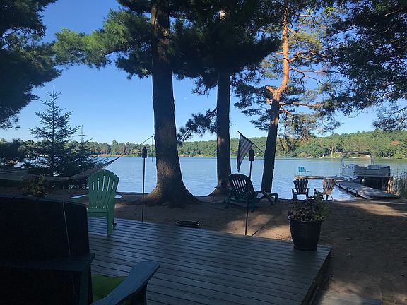 Completely turn-key 3 season cottage on beautiful crystal clear no-wake lake with excellent swimming and fishing. 50ft of hard bottom sandy level frontage includes dock and 2007 24ft Avalon pontoon boat. Many upgrades including soft close rustic pine cabinets, laminate flooring throughout, new windows, roof and decks. Sand point well and holding tank.