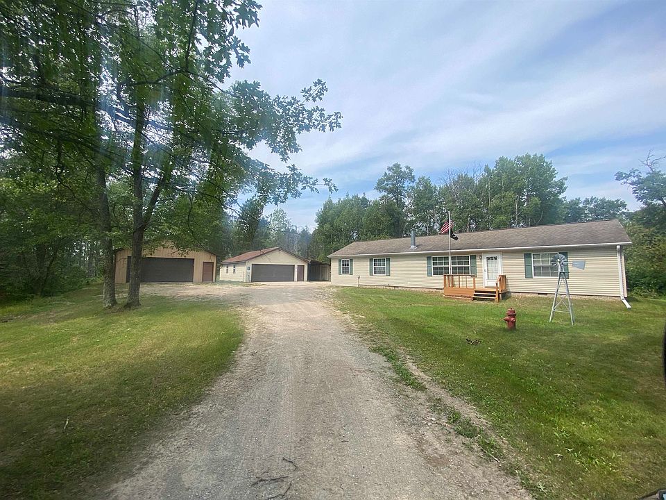 Introducing an “Up North” property w/ a perfect blend of comfort & natural beauty! 3bdrm,2bath manufactured home boasts 1,612 sq ft w/ a nice sized addition. Situated on 7.86 acres of wooded land this property offers a fenced garden area perfect for nurturing your green thumb, 2 generously sized outbuildings measuring 28 x 40 with a lean-to & 26 x 40, both w/concrete flrs.In addition to GFA there’s an outdoor boiler that provides an add'tl heat source & warmth & coziness inside, plus central air for those hot Summer days & nights! As an added bonus you’ll find an enclosed raised tree stand where you can hunt or view wildlife right from your own land! Inside the home has vaulted ceil’s & skylights to create an airy & inviting atmosphere with a split bdrm design. Drilled well & conv. septic.