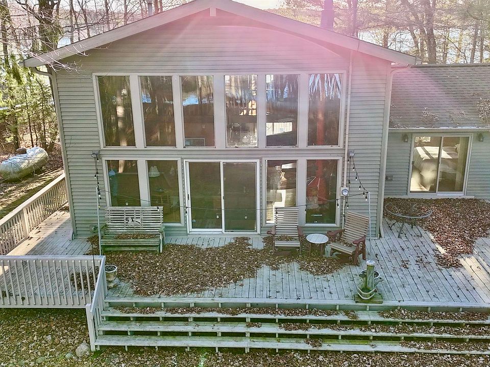 Sunrise, Sunrise...OH WAIT, Sunsets TOO? No matter where you are in this Legend Lake home, you have water views to two of the main lakes. Technically in a channel so you don't have the constant waves, yet so close to the main lakes that it's hard to call it a channel. Over 100' of water frontage on one side and endless views on the other side. A wall full of windows gives you constant natural light. A retro wood burning fireplace for those chilly nights inside and a firepit area for the chilly nights outside. Legend Lake has some of the cleanest water in the state and is a full rec 1304 acre lake with 8 lakes channeled together. Think there isn't anything to do on the lake in the winter? Get involved with our snowmobile club, our social events, our ice fishing and our Walk The Lake