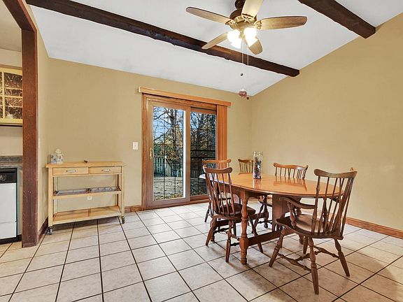 Welcome home to this spacious 4-bedroom, 2 full bath home featuring updates and comfort throughout! Enjoy vaulted ceilings and hardwood floors in the open living and dining rooms, with a cozy natural brick fireplace as the focal point. The kitchen offers charming green cabinets, laminate counters, and all appliances included. The spacious owner's suite includes a walk-in cedar closet. Two bedrooms and a full bath on the main level, plus two additional bedrooms and a full bath on the lower level with a large family room and new carpet. The lower level also features an extra tub--perfect for pets! Step outside through sliding doors to a wood deck overlooking the fenced yard. Recent updates include newer roof and siding (last 2 years). Move-in ready and full of character!