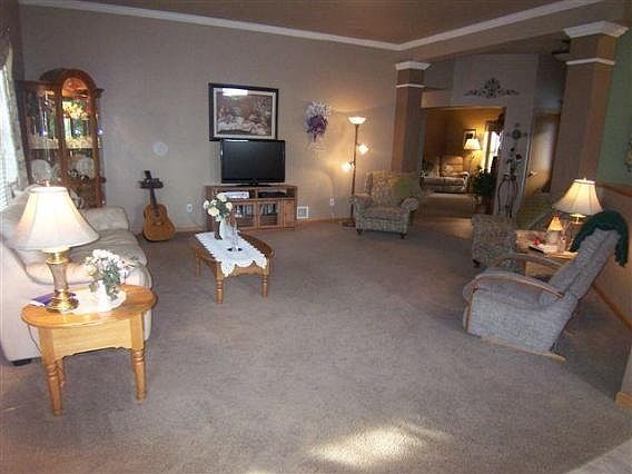 Beautifully cared for three bedroom ranch home sits on a private 1.4 acres. Kitchen features a walk in pantry, breakfast bar and built in desk. Dinette area has patio doors overlooking the large deck in back yard. Large open concept living room with ten foot ceilings.Spacious master bedroom suite includes a huge walk in closet and private full bath. Second bedroom also features a large walk in closet. Enjoy the front porch which is surrounded with gorgeous landscaping!