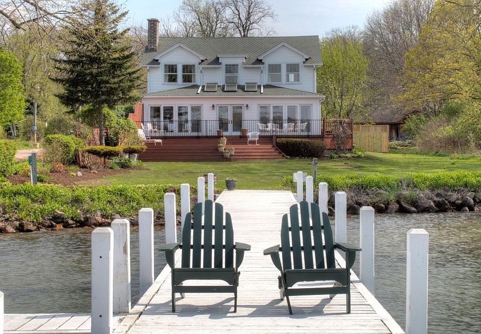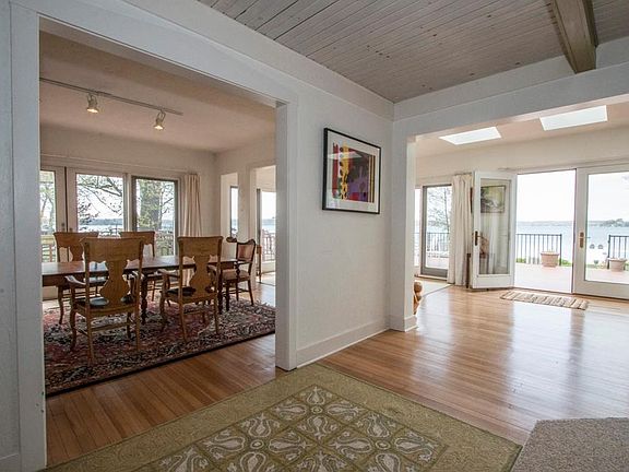 Rare! For the money, chance to own larger, flatter frontage, panoramic, center of lake outstanding views, more here than other homes in price range. 5BR, large kitchen. Lots of windows for big views, great deck, pier, slip, buoy too. Garages for toys. Nice home, canvas for masterpiece.