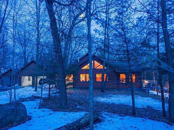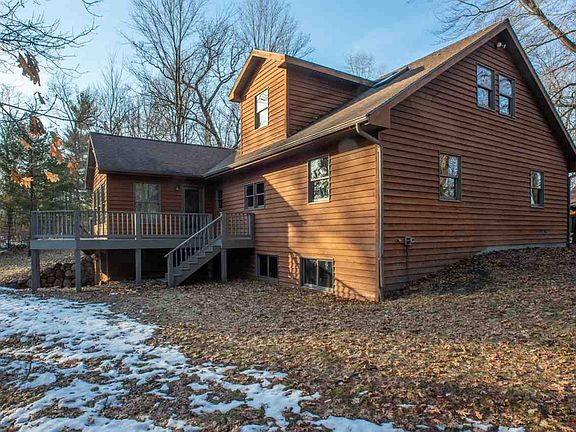 Wautoma - Nestled in 10 acres of solid woods. Discover this enchanted 5Bedroom 3Bath home snug in the woods. Covered porch entry. High wooded ceiling invites character and charm. Open staircase to loft Bedrm w/ full Bath, Main level kitchen, Bath, Bedrm, Office/bedrm, 4season room, Main level laundry room, Corner wood stove, Wraparound deck. Lower level hosts second kitchen, 2 bdrm, full bath, rec room, family room, walkout lower level. 2c attached garage. Plus 2c detached garage. Serious deer stand, deer filled woods, central A/C, new heating system. New to Market. So Beautiful - Call Now!