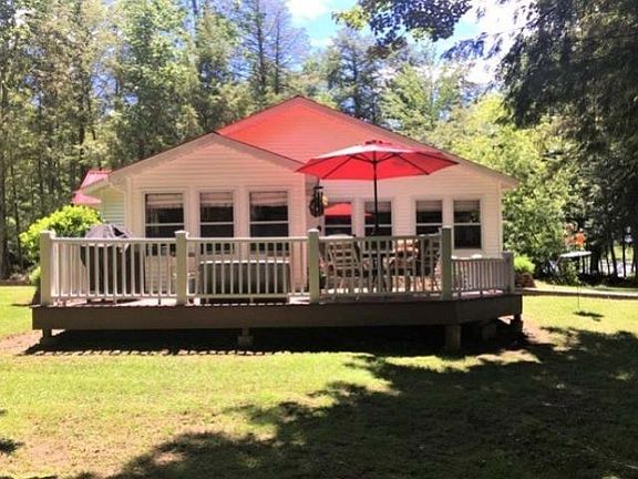 408M)This cottage has been remodeled and sits on an incredibly lovely lot on the shore of Butternut Lake! The home is ideal as a summer vacation retreat or for year round living. There are two bedrooms, one bath, a sunroom, stylish kitchen and a large living room inside. Outside are a large sun deck, fire pit area, dock and beautifully landscaped areas. The property has 104' of lake frontage and mature trees that make for the most amazing views. The property also has a 3 car detached garage and shed for convenience and plenty of storage. What are you waiting for? Call today!