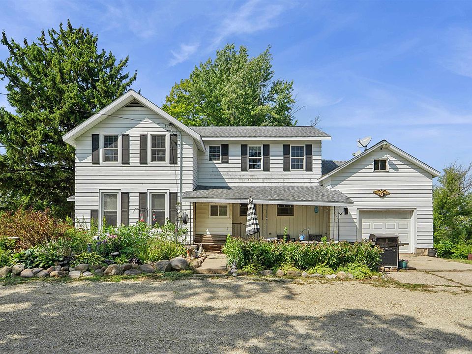 4 BD, 2 BA 2 Story Farmhouse nicely situated on 1.50+/- acres. Remodeled in 2000 to add 2nd level bedrooms and full bathroom. The main level is sure to please with a galley style kitchen including nice cabinetry, dining area, large living room, main level bedroom and full bath with laundry hookups! Upper hosts 3 large bedrooms and a full bath. 1+/- car garage. Country setting with room to grow! Updates include: NEW well, NEW A/C, Updated 200 amp Electrical, Carpet and Water Heater!