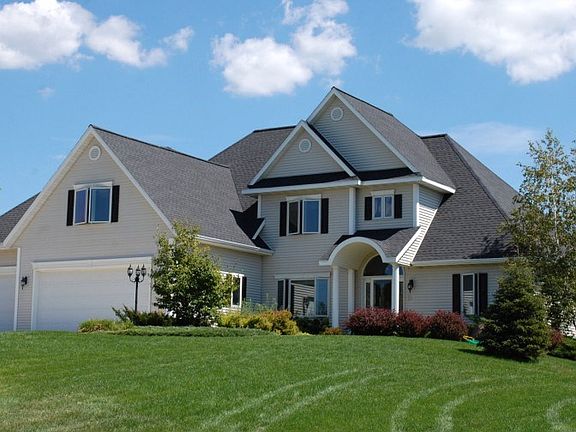 Custom-built, 2-story home in rural subdivision on a dead-end cul-de-sac. Enjoy the peace and quiet of rural living, including lower property taxes, with the convenience of being blocks away from schools and shopping in this immaculate home that features a custom hickory kitchen boasting solid surface counters and breakfast bar, a butcher block island, double ovens and walk-in pantry. Main floor laundry room with built-in ironing board and clothes chute, main floor master suite and main floor office/craft room with cabinets galore. Finished 3-car garage with oversized doors, professionally landscaped yard, Pella windows with between the glass blinds throughout, 9 foot ceilings, hardwoods and tile, finished basement are just a few of the luxuries offered in this beautiful home.