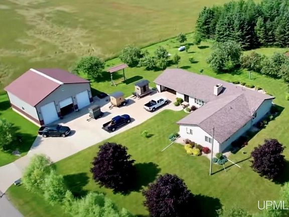 This stunning property is not only move-in ready, but all the small details make it a rare find. They thought of everything from heated bathroom and kitchen floors, on demand hot water, the innovative Pure Wash laundry system, the high speed fiber optic internet, a wired in back-up generator, multiple 30 AMP camper outlets, each bedroom being on it's own heating zone for optimal comfort, plus more! This home boasts four spacious bedrooms, a master suite with a walk-in closet big enough to be it's own bonus room, three large bathrooms, open concept living space, main floor laundry, and potential to finish off the basement for additional living space. This home is comfortable year round with the option to cozy up with the fireplace, the easy-to-use pellet stove, or to just take the morning chill out; turn on the heat setting on the mini split. Need to cool off? No problem! The mini split does the job and will have you cool and comfortable on those hot summer days within minutes! The back patio is truly an Upper Michigan dream, surrounded by nature and no neighbors in sight! Watch the wildlife come in, sip coffee under the sun, or start up a garden. Another rare find; apple, pear, peach and plumb trees! All producing fruit and absolutely gorgeous. As if that was not enough, this property has a huge pole building for storing toys, equipment, having a work space, or turn it into a party barn. Do not miss your chance to make this unique and rare find yours!
