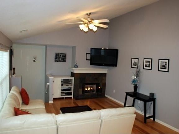 Enjoy relaxing pond views from the private deck.Upgrades include hardwood floors,cherry cabinets,stainless appliances,ceramic tile baths and entry,dining and fireplace slate tile finishes. The open concept great room,dining and kitchen are sure to please. Spacious master suite with luxury bath and shower. Dual staircases offer a front entry staircase and back garage staircase. Spacious 2.5 car garage with extra storage. You can have it all, for less than new construction.