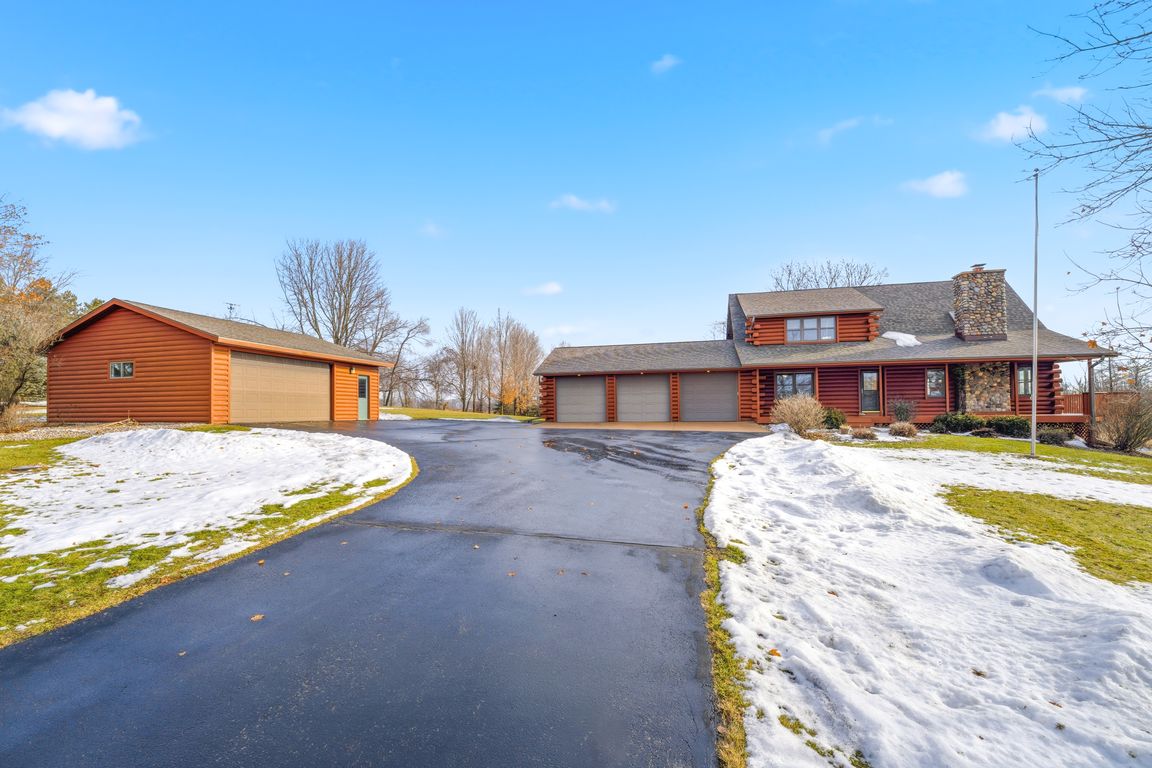 Meticulously maintained one owner log home is set upon a picturesque setting on just over 11 acres. Welcoming front porch greets you upon entry. Living room is centered around the wood burning FP, features vaulted ceilings and beautiful log staircase. Spacious kitchen boasts appliance package, island, eat-in dining area with access ...