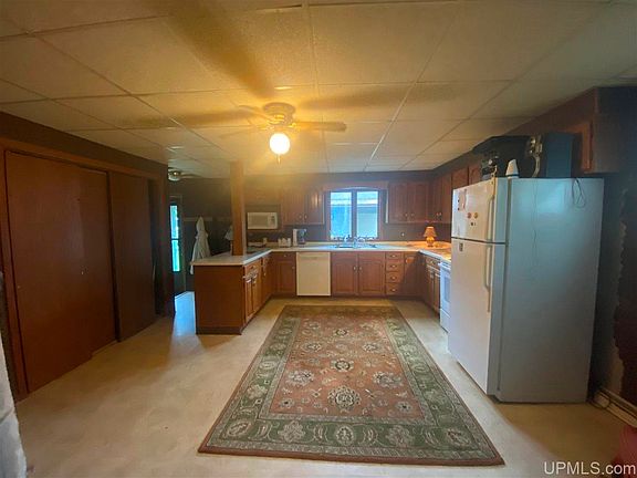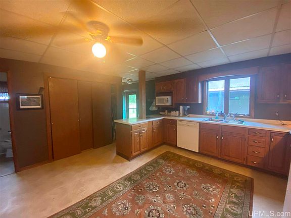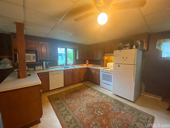 This home sits on a nice corner lot which is partially fenced in. Spacious kitchen with all appliances included. Dining room and large living room along with a bedroom and bathroom all on the main floor. Upper level of home has 3 bedrooms (one room is a walk thru room) and a full bathroom. 2 car detached garage with wood stove included and a covered patio area. Household furniture can even be included if buyer wants.