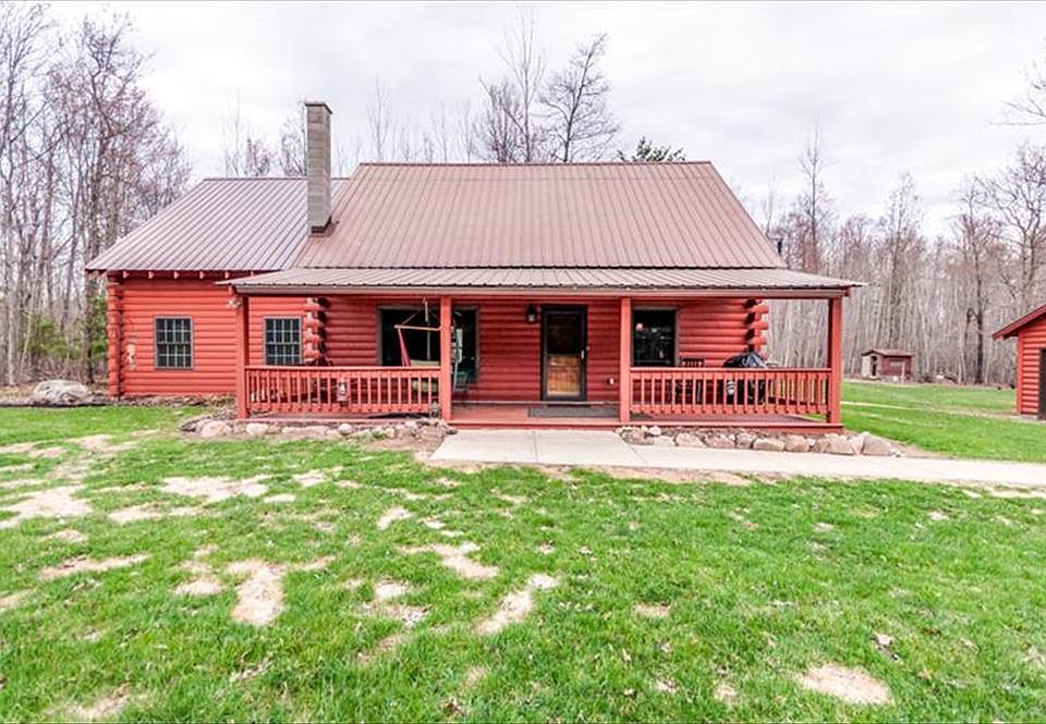 2 miles from Daves Falls and near 12 Foot Falls and 18 Foot Falls. Marinette county Dunbar log home nestled in a tranquil wooded setting on over 2.5 acres. Located just two miles to the waterfall capital of the county, Dave's Falls, 12FT waterfall and 18FT waterfall and ATV trails. Full log and frame constructed three bedroom/2.5 bath with main floor laundry, oak kt with ample cabinets and granite tops, main floor bedroom, pellet stove, radiant in floor heat and upper level retreat with full bath, jetted tub and very ample storage. Built in 2002 with a 2006 addition, very well maintained inside and out. Large detached garage, concrete sidewalks, landscaped and concrete driveway. Very peaceful area.
