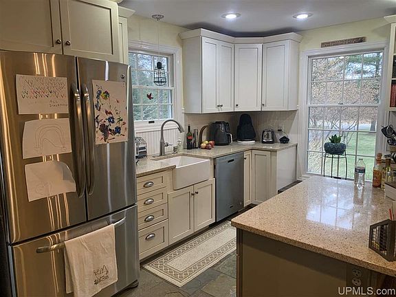 Turn key! Move right in and enjoy the private fenced backyard, vegetable garden, towering backyard pines, and so much more.... Spacious 3 bdr 2 bath home features updated kitchen and bathrooms with quality materials, as the house was completely renovated in 2009 with modern décor. Vaulted ceilings, french doors to backyard deck, and wood burning fireplace. Spacious dining room area and separate breakfast nook area. Finished basement with walk up exterior entry features a large family room, den w/wet bar, full bath and bedroom finished with similar quality materials as the main level of the home. Priced to sell! Don't wait or this one will be gone. Direct access to snowmobile/ATV trail system. Less than 30 min. to Downtown Iron Mountain, MI.