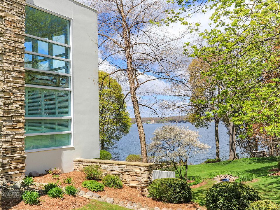 Sophisticated Contemporary Geneva Lakefront Home with soaring light filled spaces as well as nooks for intimate gatherings. Recent extensive renovations-new skylights, flooring, roof 2017, new water heaters. Open, flexible floor plan with dedicated office/library, space for home fitness studio. Lower level works as guest suite with two bedrooms. And large lakefront rec room with wet bar. Lake views from all rooms. Decks and balconies to overlook 150 feet of Geneva Lake frontage. Additional features: abundant skylights, media room with fireplace, island kitchen with granite countertops, high end appliances. Cathedral ceilings, multiple fireplace, two laundry rooms, and huge lake views.