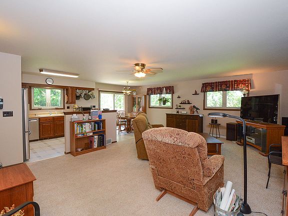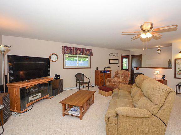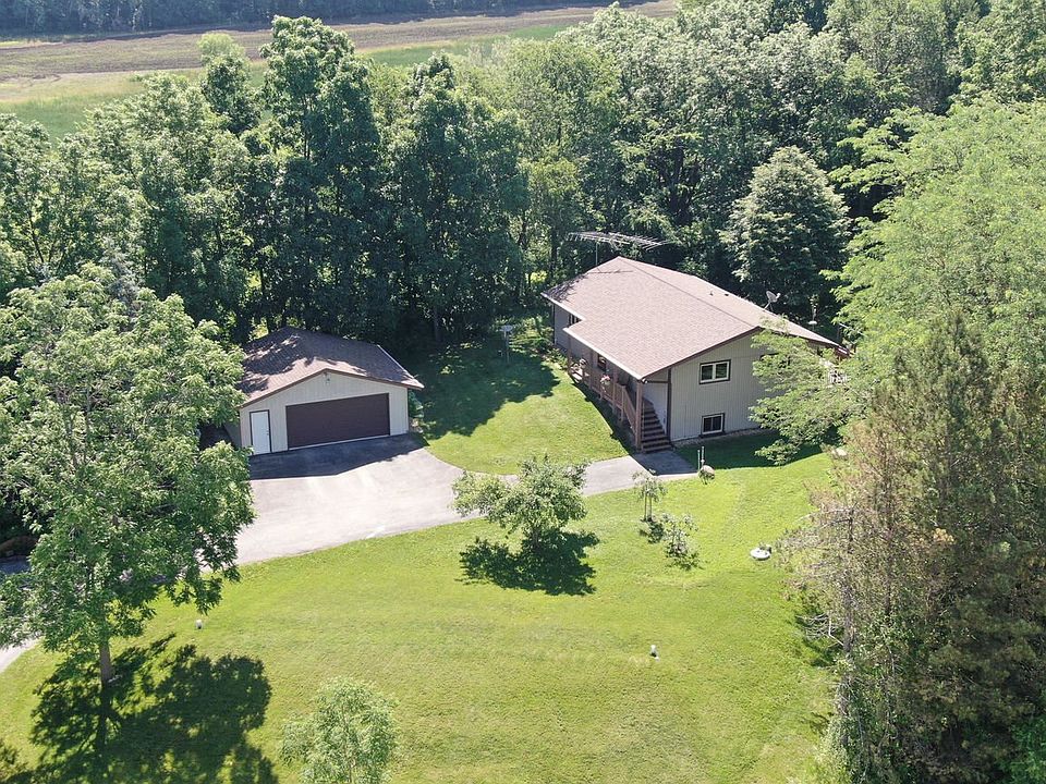 Private seclusion on 1.5 acres with views and gorgeous perennials! Kitchen and dining room offer newer appliances with a double oven for entertaining. Open concept! Step outside to the back deck and enjoy the views and fire pit. Lower level offers two additional bedrooms and a full bathroom. Rec room area awaiting your ideas with additional space for a workshop area. Newer windows, siding and septic system! 2.5 Car detached garage. Move in ready!
