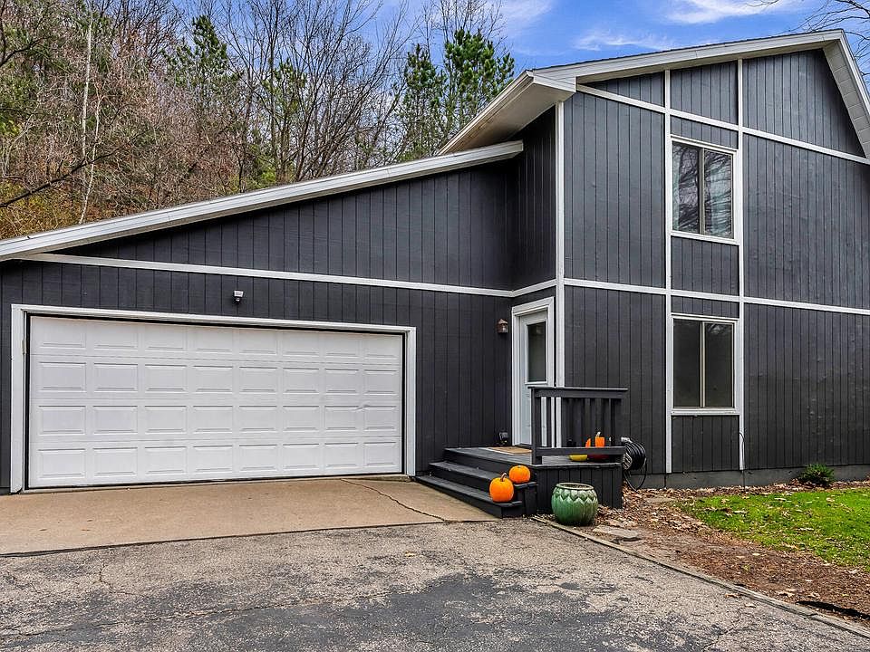 Beautiful updated private home sitting on just over 10 acres of great hunting land. This property has a perfect country location while still only being 10 minutes outside of the city of La Crosse. It is surrounded by gorgeous buff country and breathtaking views. The house has 3 bedrooms and 2 bathrooms, with a bonus bedroom in the finished basement. The master bedroom includes a large walk-in closet. The kitchen was remodeled with new appliances, countertops, backsplash, and a large farmhouse sink less than four years ago. New paint in every room inside the house, as well as the whole exterior and decks. The deck in the back is right on the edge of the woods and allows for complete peace and quiet. heated 2 car garage.