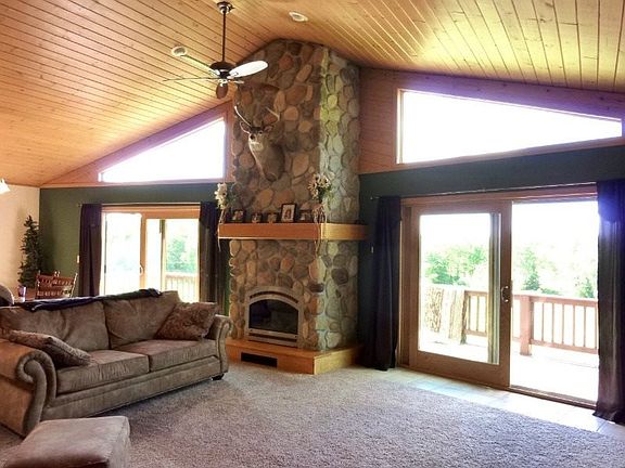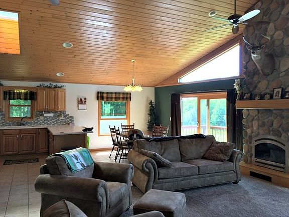 You'll find generous space in this newer, open-concept 3 bedroom, 2.25 bath home with ample acreage! Features include a great room with grand stone fireplace, tongue-and-groove vaulted ceilings, abundant windows, kitched with solid-surface counter tops, and a deck with commanding views. The exposed, walkout lower level has a third bedroom, wood-burning stove, drywalled tongue-and-groove walls, and patio doors leading out to 37+ acres of forest and fields. Located just 20 minutes from Iron Mountain, Michigan.