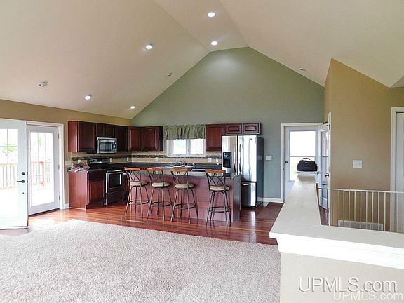Modern, welcoming, and tasteful, this open-concept 3 bedroom, 3 bath ranch home is perfectly situated on 6.8+ acres close to town! Features include soaring vaulted ceilings, large kitchen island, stainless steel appliances, master suite, walkout lower level, and a spacious deck overlooking the pool and very private acreage.