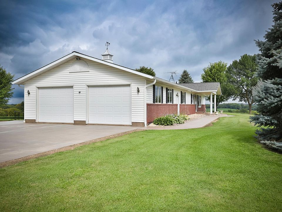 Panoramic views are an understatement here for this absolutely picturesque property! This meticulously maintained home and grounds offer not only views and serenity, but the convenience of 1-level living, with an in-law suite in the lower level. SO much to appreciate here: tinted windows, composite deck, spray foam insulation, in floor heat in garage, 200 amp service, tons of storage and a 40 x 72 pole shed for the toys! Even the huge living roomTV stays! Tillable acreage and woods make this the perfect hobby farm! Don't miss out!