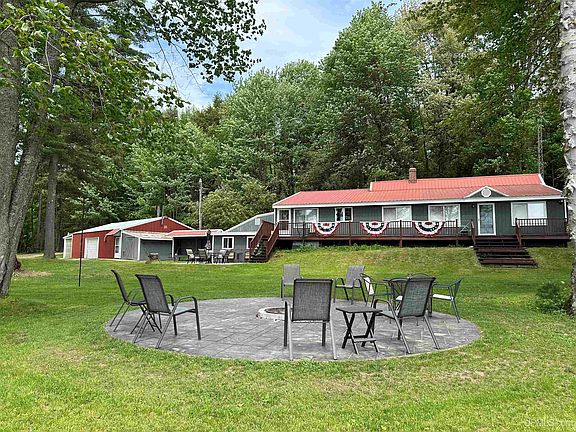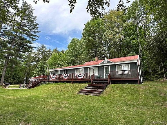 UP North getaway on 6 acres with 675' of sandy frontage on Corner Lake! This beautiful lake is a part of a chain of 4 lakes consisting of 477 acres in Hiawatha National Forest. This home has over 2,500 sq ft of living space with 3 bedrooms, 2 bathrooms, and several different living areas. The knotty pine interior gives you that cozy cabin feel. You can take in the lake views from the porch, patio, or while enjoying a campfire. The detached garage/pole building is heated by wood and has a workshop area. Plenty of storages for all of your toys. All furnishings in the home including the dock, 2 kayaks, Canoe and out door furniture, outside of a few items the seller is taking, are included in the sale. Beyond enjoying the lake, this property offers close access to Munising, Pictured Rocks, and Lake Superior. There is so much to do here!