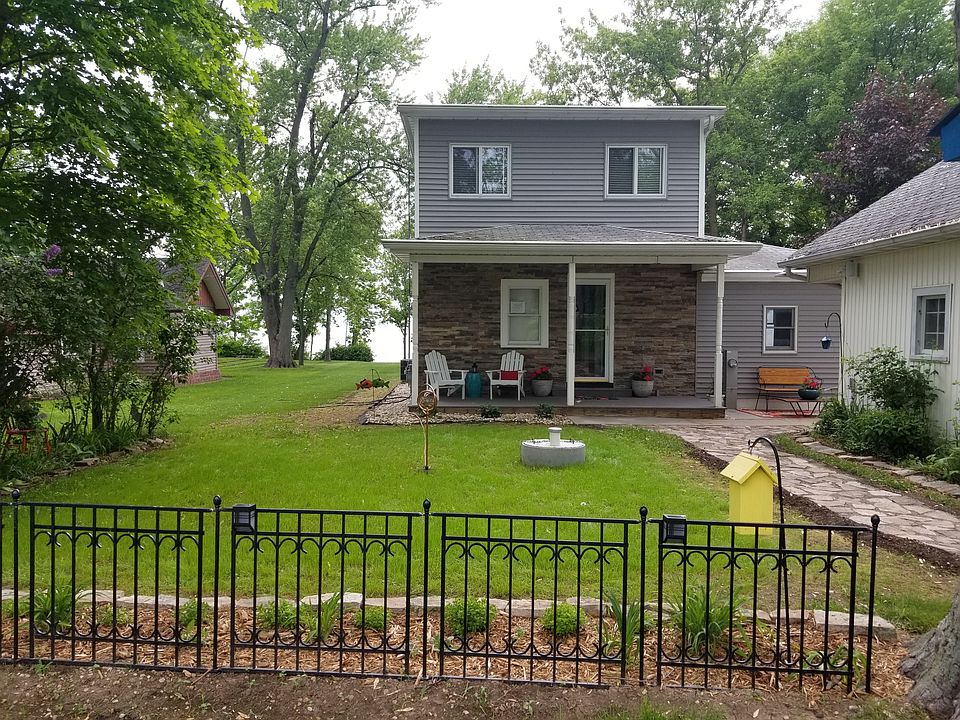 120' of lake frontage and shaded property is the focus of this 3 bedroom completely renovated home on Lake Winnebago. Relax in the large screened in covered patio and enjoy fantastic sunsets! Open concept that is perfect for entertaining and many large windows to enjoy the lake views. The upper level has 2 spacious bedrooms and a half bath. The main level has large island, eat-in kitchen, living room, full bath, and third bedroom or office. Lots of storage with a full basement, 2 detached garages; one is a 2 car and one is 1 1/2 car currently used as a workshop. Unwind at all the outdoor spaces and enjoy this beautiful property! HOA dues are $150 a year. This property consist of 2 lots and is 2 tax parcels 2366 & 2367.