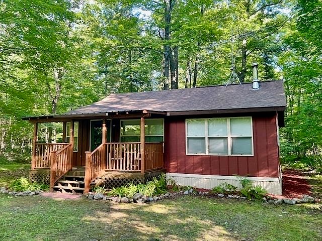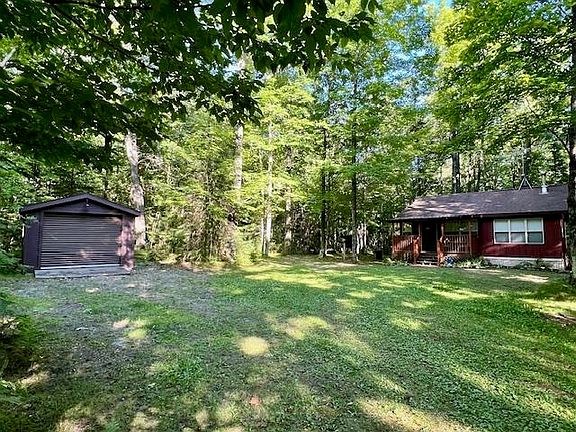 This charming cottage offers a peaceful country retreat on 4+ wooded acres. Spacious open-concept LR with cathedral ceilings, wood-burning stove, and patio doors. The main floor BR is complemented by a small loft for extra sleeping space. KT/BA with plumbing that drains to the septic system. No well system, no water plumbing—bring portable water for your stay. Sold mostly furnished. Covered front porch. A det. 12’ x 24’ garage/shed offers storage for gear and space for your UTV. The 4.17-acre wooded lot is filled with mature trees. Located on a dead-end town road with year-round access, this property has direct ATV trail access and only 5 minutes from Lake Hilbert beach/boat landing. DEADLINE FOR OFFERS 9/5/2025 ON-BY 7:00PM