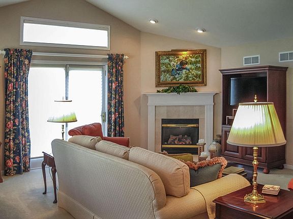Come see this attractive, well cared for, move-in condition 2 bedroom, 2 bath condo with cathedral ceiling living room, dining area, gas fireplace and door to fenced patio. The bright master bedroom offers a walk in closet and attached whirlpool bath. A cooks delight white kitchen with island, cabinets galore, breakfast room and coffee bar. A second bedroom, bath plus utility room complete the ranch plan, a covered private entrance and well landscaped large yard to enjoy!