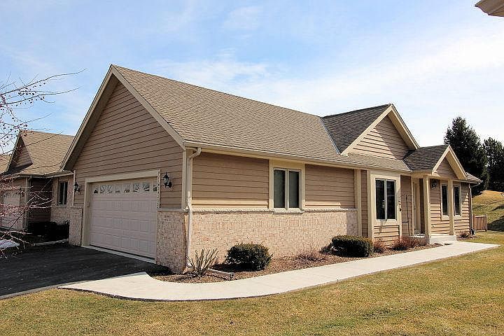 This well cared for ranch style condo is in ''move in'' condition. Cathedral ceiling LR has a gas fireplace & sliding doors to deck. Large MBR has WIC & private bath w/whirlpool tub. Kitchen features a center island, sufficient amount of cabinets w/pantry & a breakfast bar. A second BR & BA plus laundry room complete the floor plan. Full basement plumbed for a 3rd bath waiting to be finished. 2.5 car attached garage w/add'l entry. Freshly painted throughout!!! Brand new blinds w/transferable warranty.
