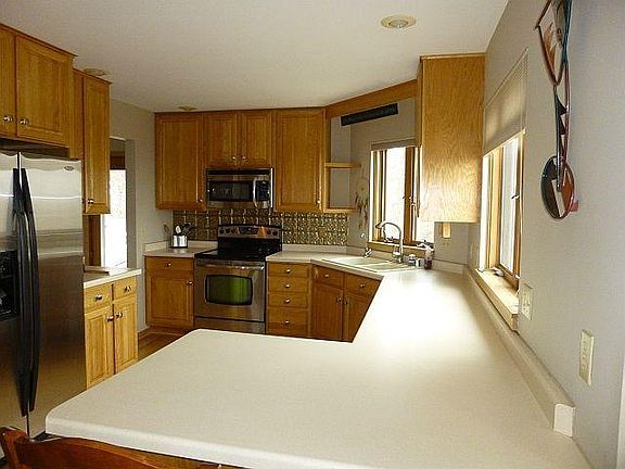 Unique Kettle Moraine property on 4.5 acres. Enjoy breathtaking, panoramic views on partially wooded lot. Warm and inviting open concept with many custom features. Great Room boasts marble fireplace. Kitchen has breakfast bar and stainless appliances; nearby laundry room. Upper level features huge family room with fireplace; Master Bedroom with walkout deck; Master Bath with whirlpool tub. Insulated, dry walled garage and walkout lower level. Property includes 30 by 50 pole barn with 200 amp service. Horses are allowed. Private patio and deck. A perfect blend of woods and open space.