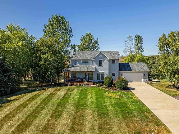Showings start 10/6! Your dream home is just minutes from Monroe! You are greeted w/ beautiful landscaping & charming wraparound porch. Inside find tall ceilings, new wood trim & solid-core doors, fresh paint & LVP flooring. The bright living rm flows into dining rm w/ private countryside views. Kitchen features 2-tone cabinets, new SS appliances & sink & a sunny dining area w/ sunrise views out the new patio door & deck. Off the kitchen are laundry & a 1/2 bath. Upstairs you?ll find 2 spacious bedrms, an updated full bath & primary suite w/ great walk-in closet. LL offers a cozy rec rm w/ new flooring, 2nd laundry (no flooring) & walkouts to fenced yard & patio. The 2 heated garages (2 car Main, 1 oversized LL), new 28'x14' Marten shed, newer roof & expansive yard completes the package!